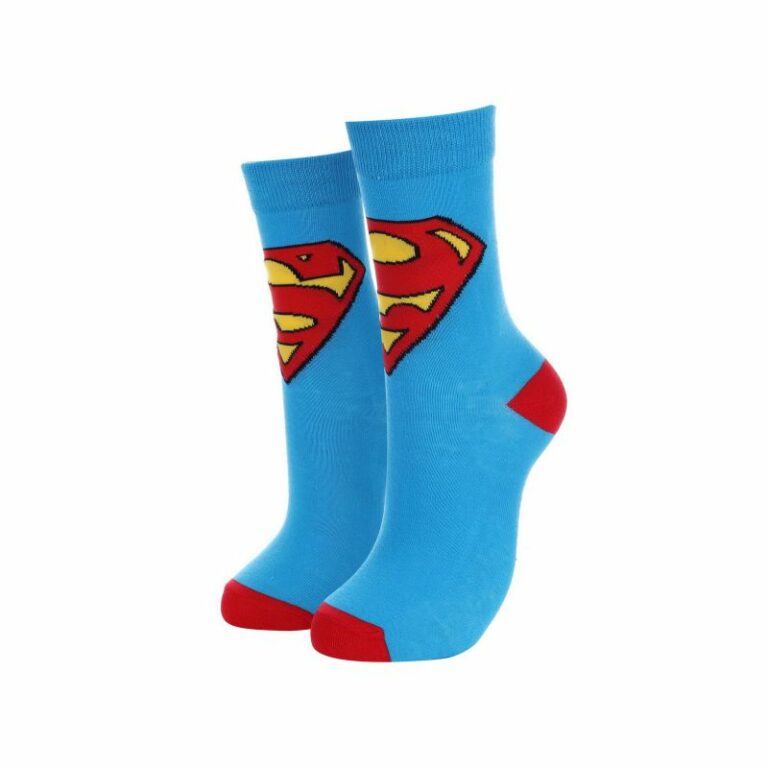 Superhero-themed socks - Superman badges on a blue background