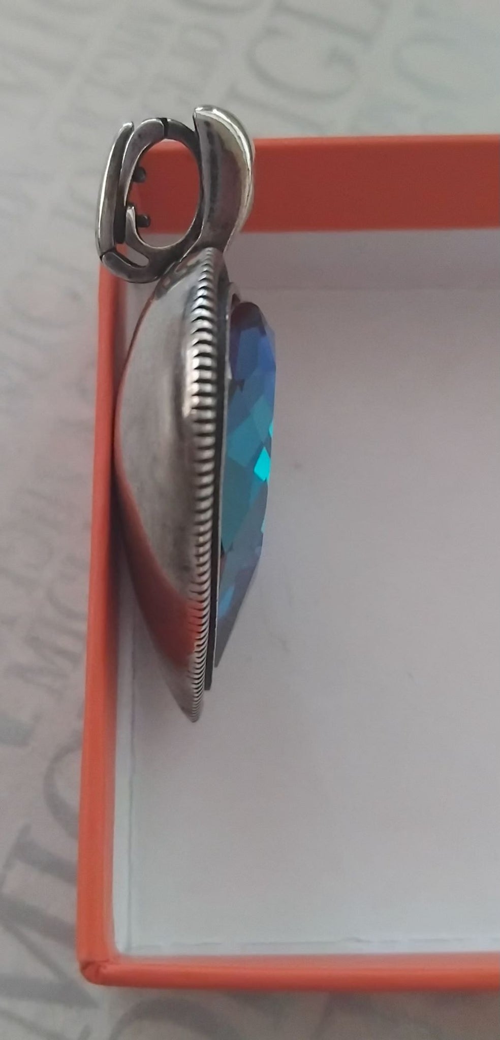 Large Miglio burnished silver & blue Swarovski crystal heart enhancer
