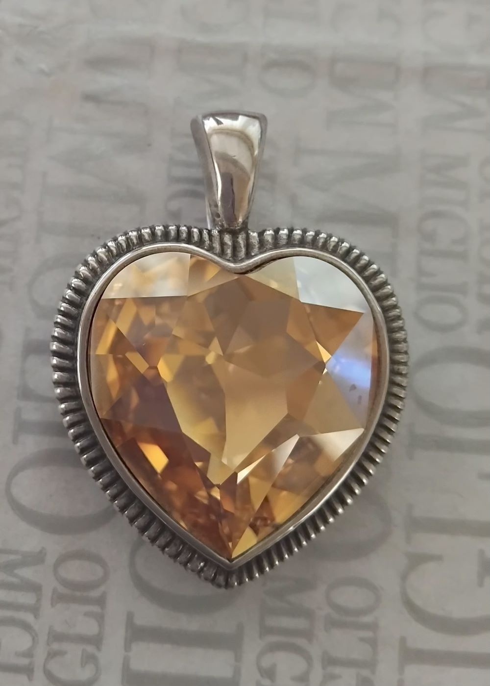 Burnished silver heart pendant with golden shadow Swarovski crystal