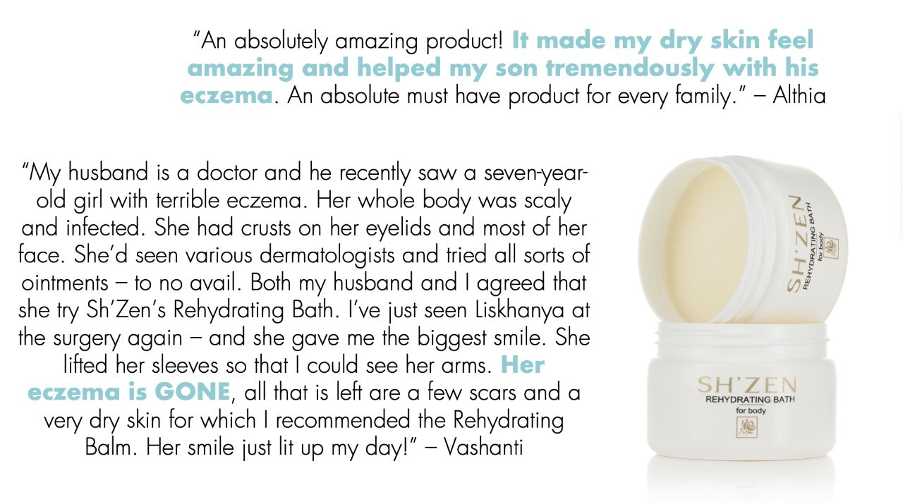 Sh'Zen Rehydrating Bath (125ml) is a rich emollient is designed to moisture and comfort extremely dry, cracked skin. It's made from the finest waxes and is enriched with Shea Butter, known for its deep moisturising benefits as well as anti-inflammatory properties. It also contains healing Calendula and nourishing Sweet Almond Oil, which penetrates deeply into the skin to stimulate repair.