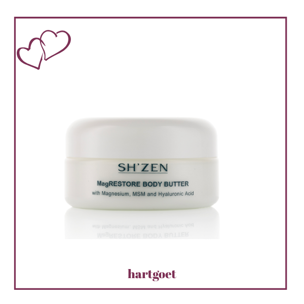 The rich Sh'Zen MagRestore Body Butter (150ml) hydrates and nourishes, soothes tired muscles, and helps your body and mind feel relaxed and restored.  It supports skin repair and resilience, leaves skin soft and smooth, and the calming natural blend eases stress and restores balance.