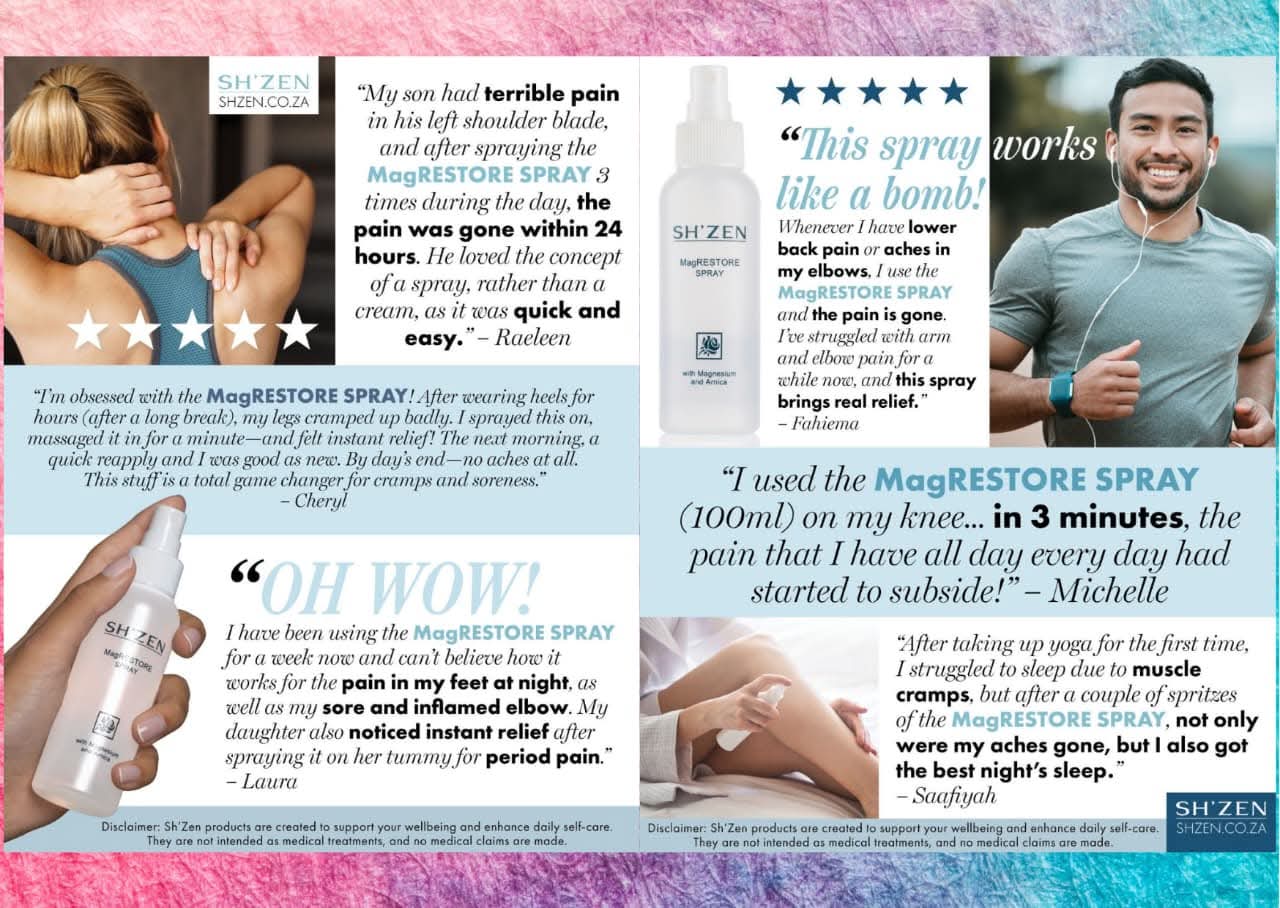 The new Sh'Zen MagRestore Spray (100ml) is a potent magnesium-based spray that helps replenish magnesium levels and support whole-body wellness.