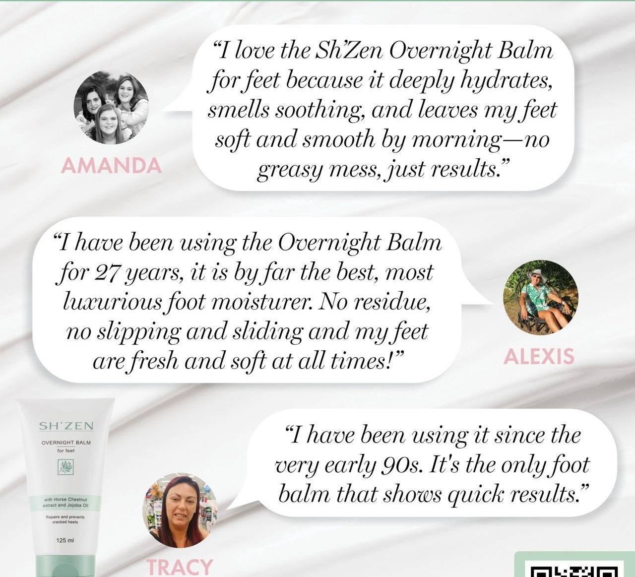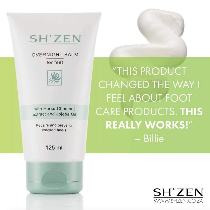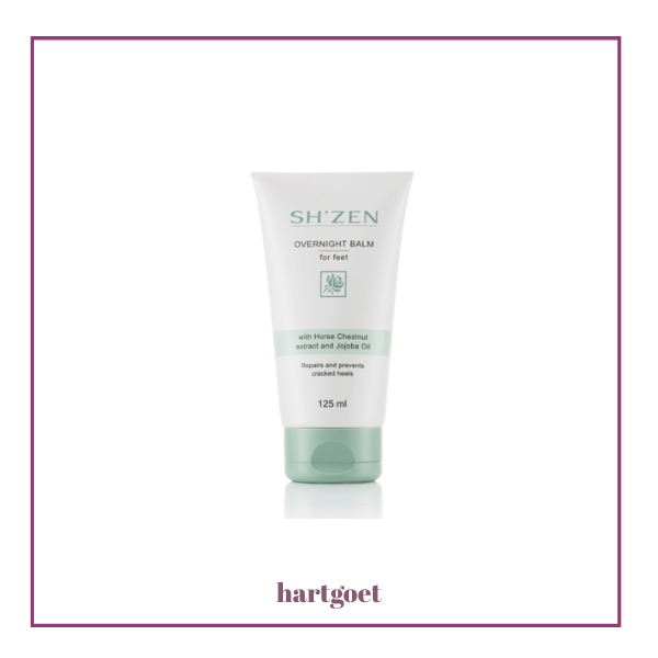 Sh'Zen Overnight balm for feet is a luxurious heel balm that repairs and prevents cracked, ridged heels.